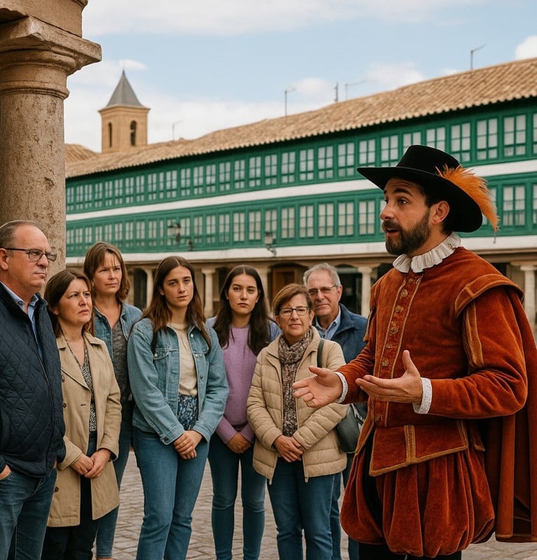 El Tour Dramatizado culmina en la emblemática Plaza Mayor y dentro del mundialmente conocido Corral de Comedias, donde la magia del teatro cobra un sentido especial.