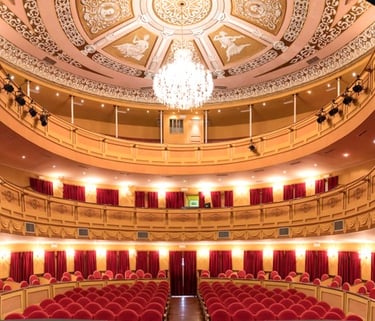 Bienvenidos a “La Bombonera”, nuestro teatro “de golosina” desde 1825. Aquí el escenario es frontal, la acústica mima cada susurro y el público vive el teatro a la italiana.