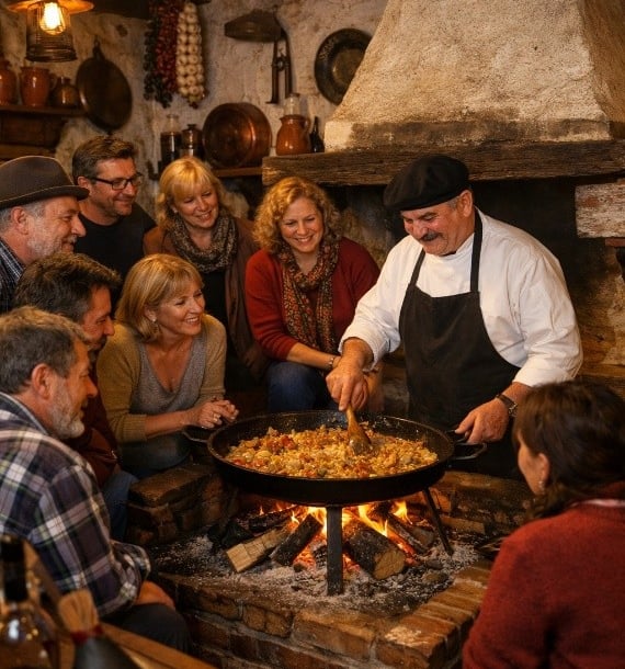 La actividad comienza a la hora acordada. A tu llegada, el cocinero, junto con su pinche (ayudante), presenta el plato elegido, explica los ingredientes y la manera tradicional de elaborarlo.