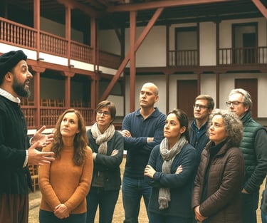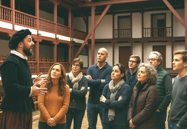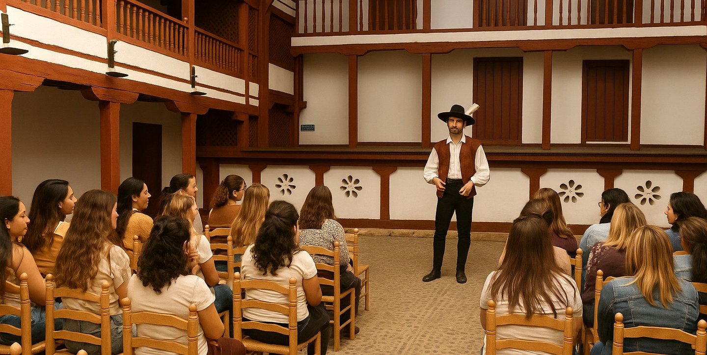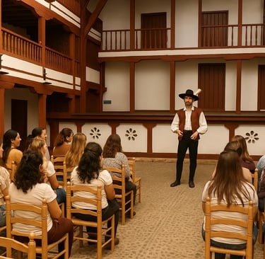 El Tour Dramatizado culmina en la emblemática Plaza Mayor y dentro del mundialmente conocido Corral de Comedias, donde la magia del teatro cobra un sentido especial.