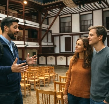 Explora Almagro con un guía privado y convierte la visita en una experiencia única: barrio histórico + monumentos imprescindibles, solo para ti y tus acompañantes. Ideal para parejas, familias y grupos pequeños que quieren conocer Almagro de forma cercana y personalizada.