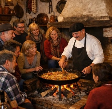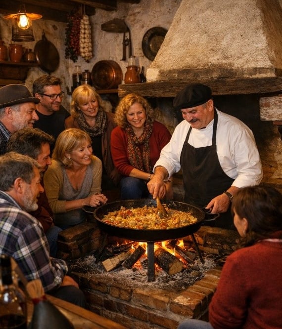 Vive un almuerzo privado en un cocinón típico manchego, dentro de una casa tradicional de vecinos de Almagro. Un espacio con mucho encanto, con gran chimenea y ambiente rústico, donde la cocina se hace como se ha hecho toda la vida.